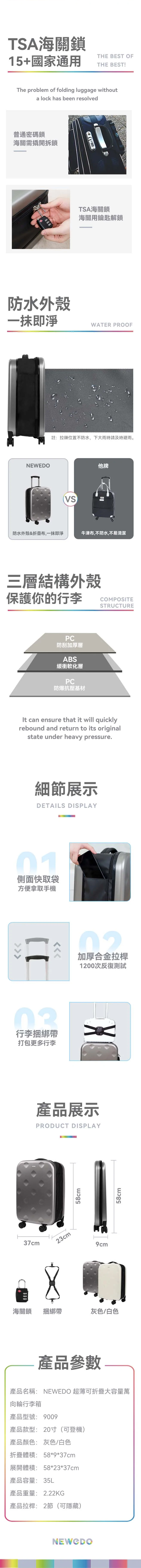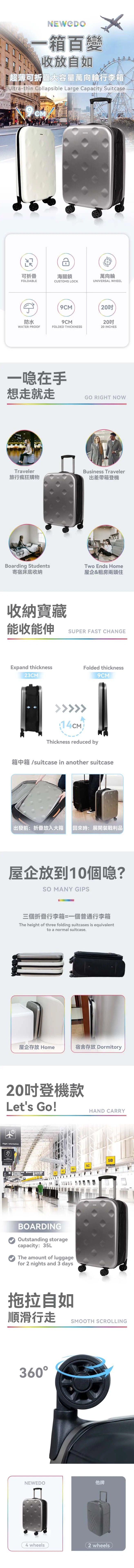 美國NEWEDO 超薄可折疊大容量萬向輪 20寸 行李箱(可登機)