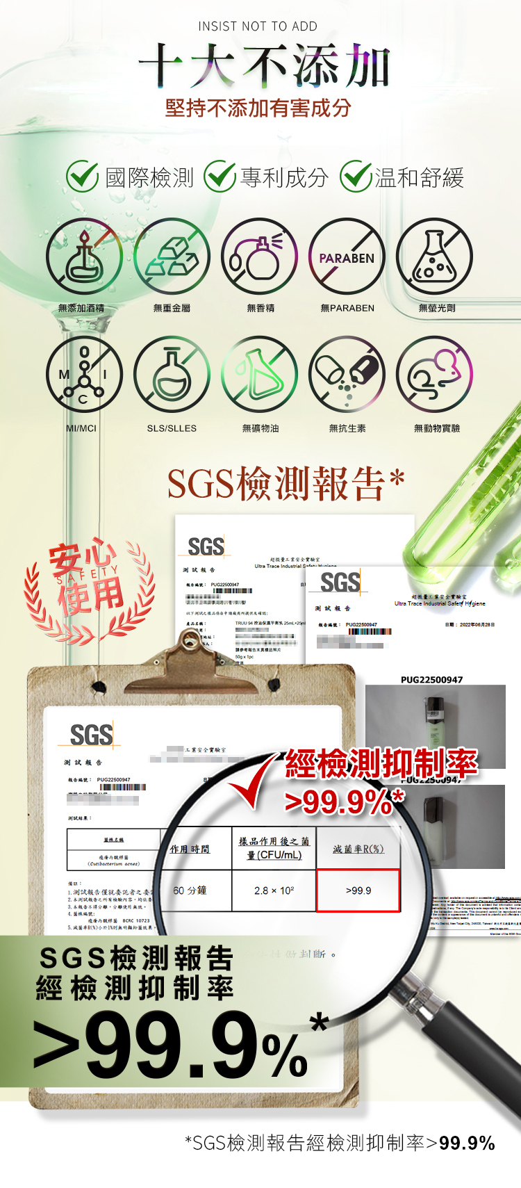 3️⃣SGS認證99.9%抗菌
