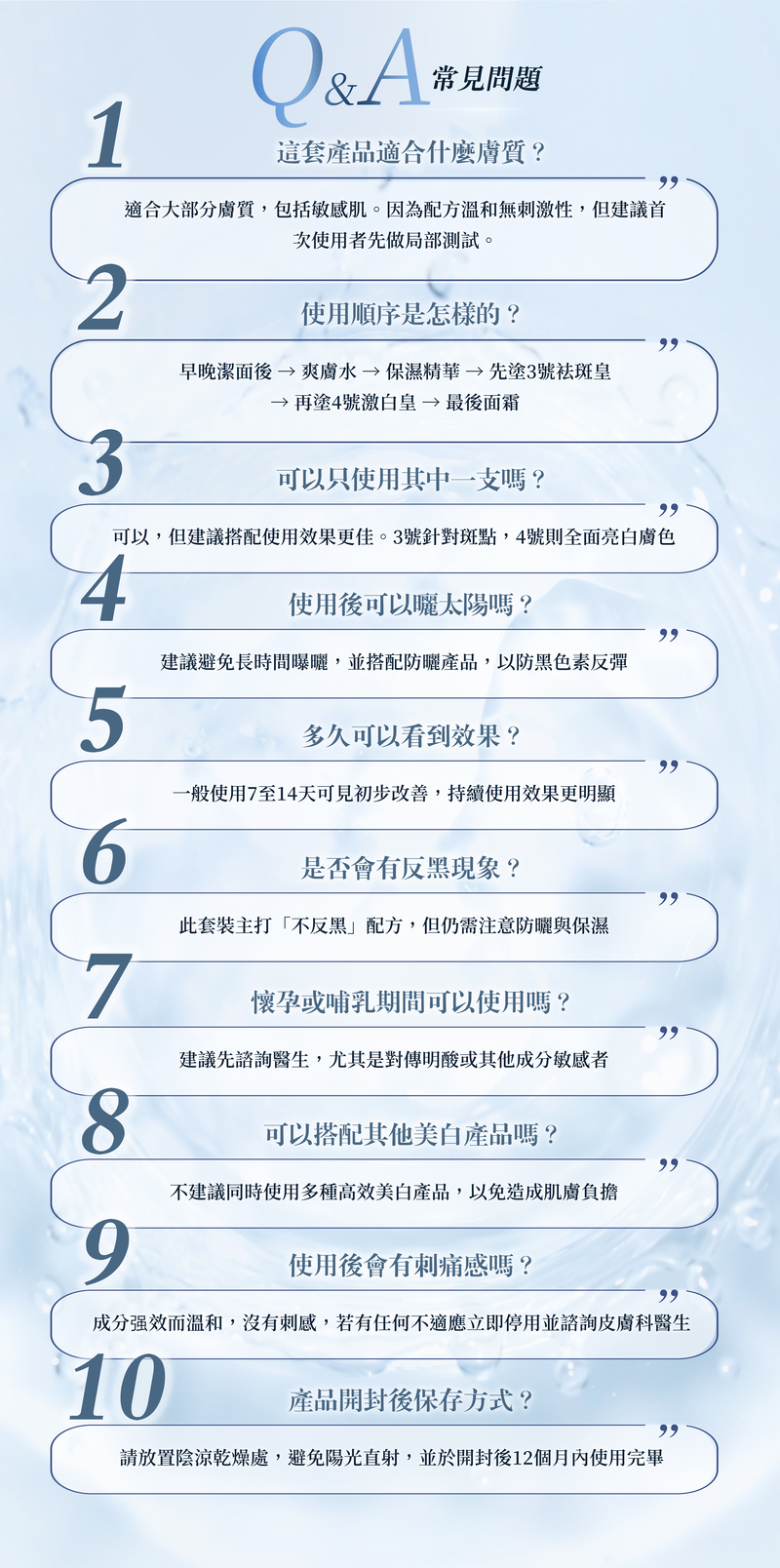 3. **簡單護膚步驟**:每日使用,輕鬆實現白皙光澤肌膚,告別暗沉與色斑困擾。